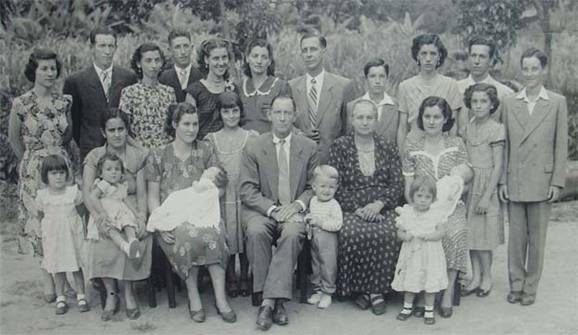 Guilhermina e Arthur com os filhos, genros, nora e netos |